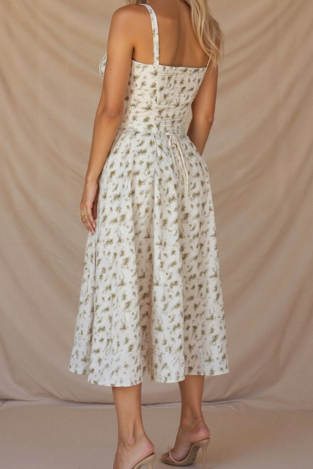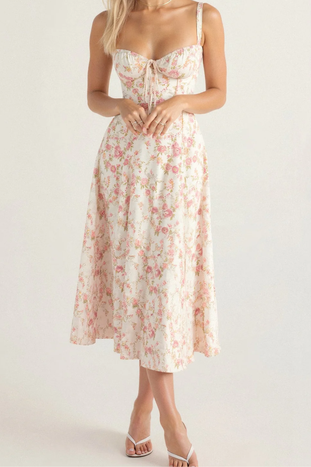 Una silueta suave y femenina se encuentra con una estructura tipo corsé en este diseño midi. El tejido ligero sigue el cuerpo de forma natural, creando un look limpio y sin esfuerzo con un toque suave y romántico.