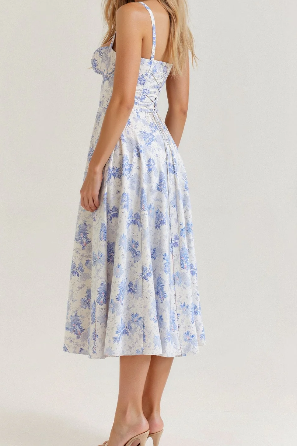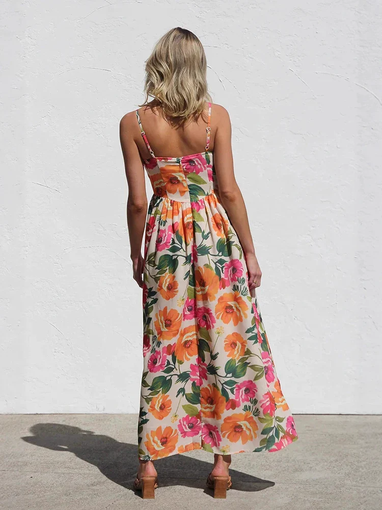 Floral Strap Backless A Line Midi Dress