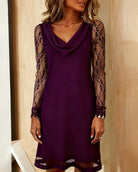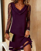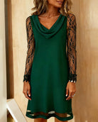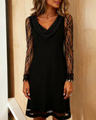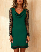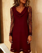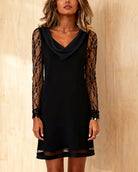 La silueta recta y el diseño refinado crean una presencia sofisticada con un toque sensual y moderno. Las mangas largas de encaje aportan textura y detalle, mientras que el corte mini equilibra el look con una sensación ligera y femenina.